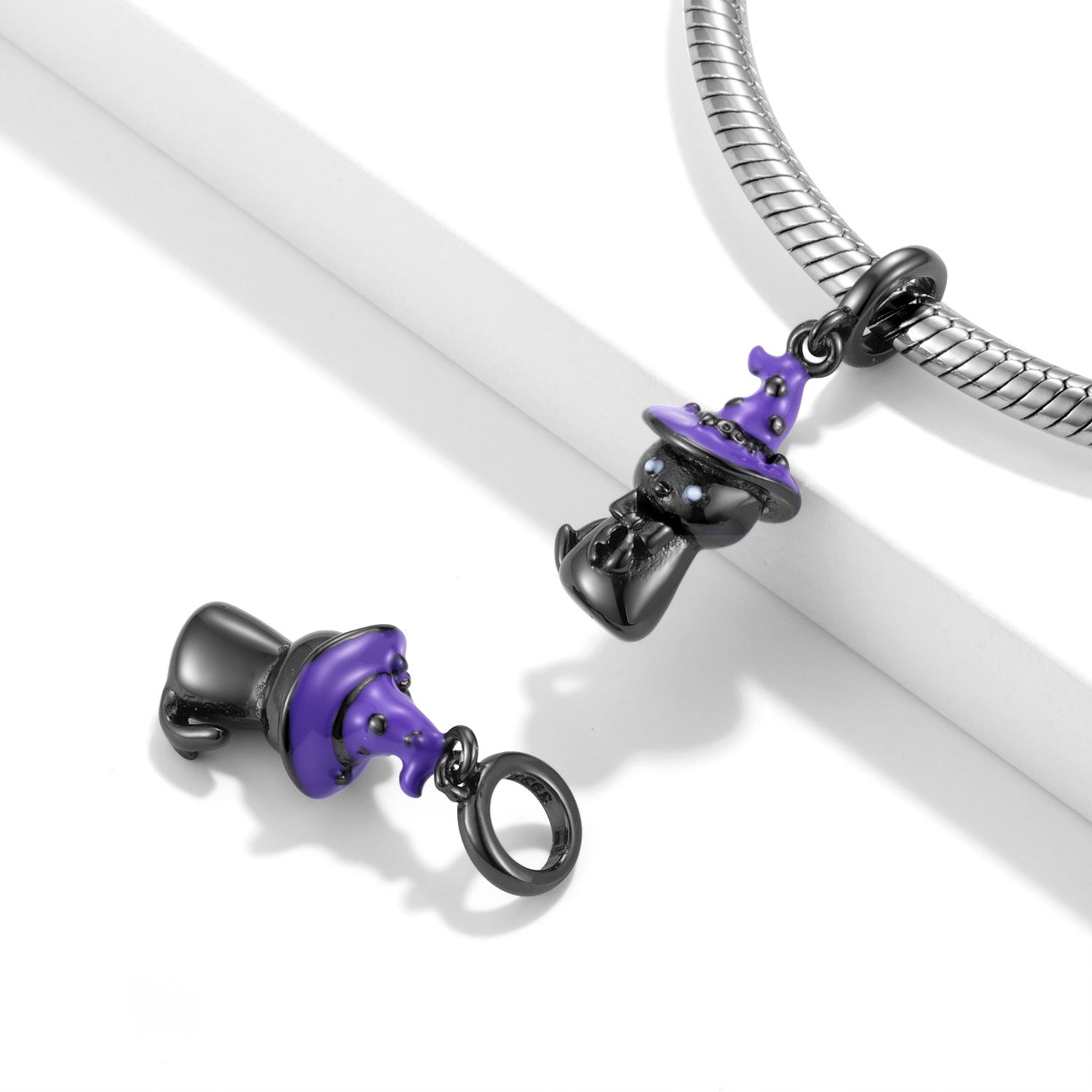 Cute Black Cat Pendant S925 Silver Plated Black Gold Bracelet DIY Accessories Pendant