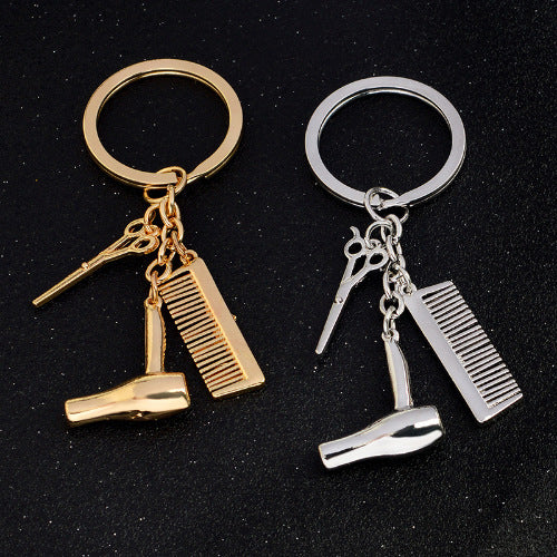 European and American jewelry fashion hairdresser hairdressing tools gold and silver alloy men and women gift key chain wholesale