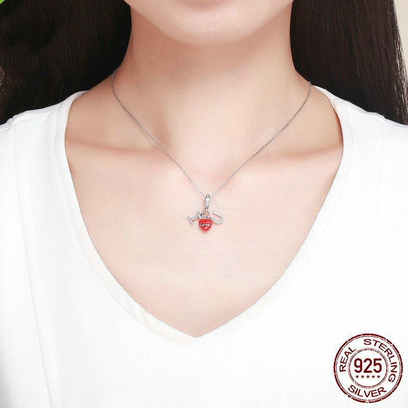 I LOVE YOU Lady Beaded Bracelet Accessory Silver Pendant